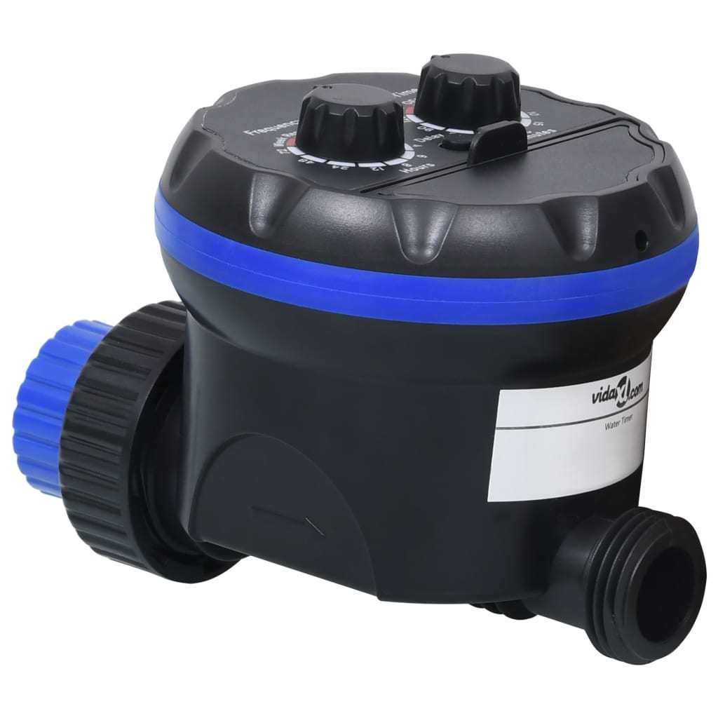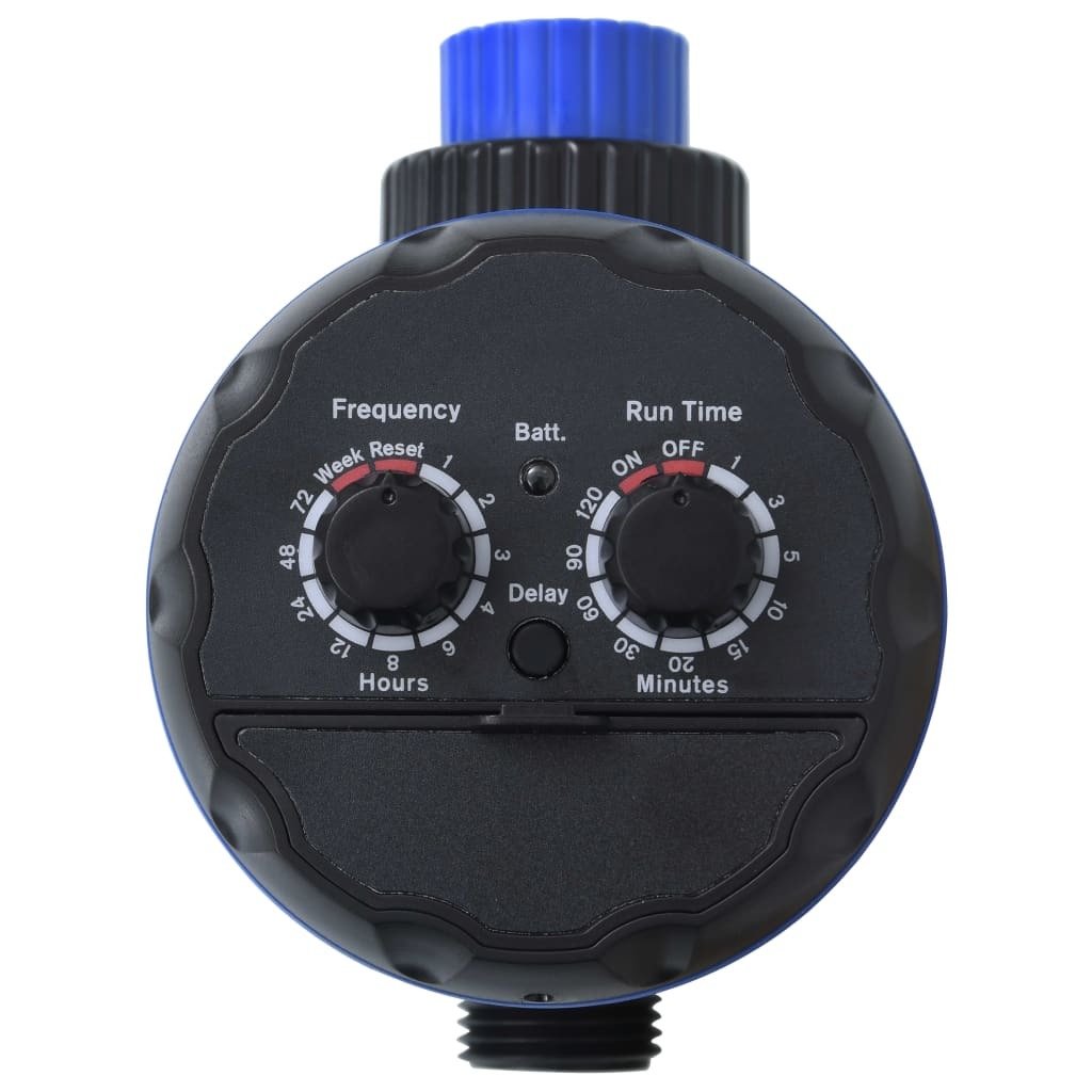 This garden automatic water timer, featuring an automatic watering system, is designed to save water and time. It can be easily set up with two dial wheels: One for cycle time and the other for watering time. Made of ABS, this water timer is both waterproof and corrosion-resistant. Thus, it ensures a long service life.Color: Black and blueMaterial: ABSWorking temperature: 1-60 ℃Water pressure: 0-8 barsFrequency: can be set at 1, 2 , 3, 4, 6, 8, 12, 24, 48, 72 H, and weekRun time: can be set at 1, 3, 5, 10, 15, 20, 30, 60, 90, 120 mins2 Separate valves with flexibility settingsCan be attached to 0.07" or 0.1" tap or faucetRequires 2 x 1,5 V battery (not included)
